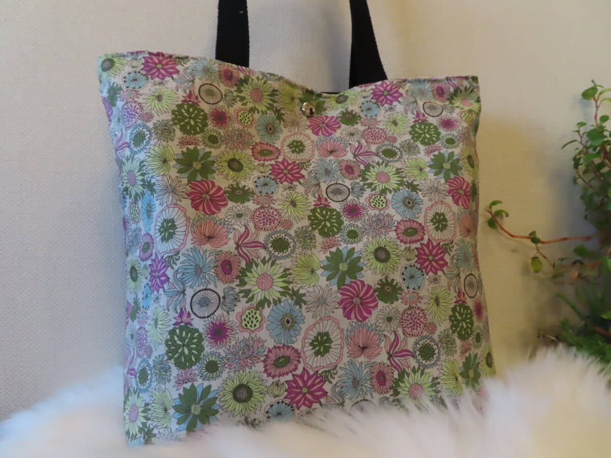 - 55 ハンドメイド サブバッグにも便利な 手提げトートバッグ 内布 撥水加工 繊細なタッチの小花 プリント柄