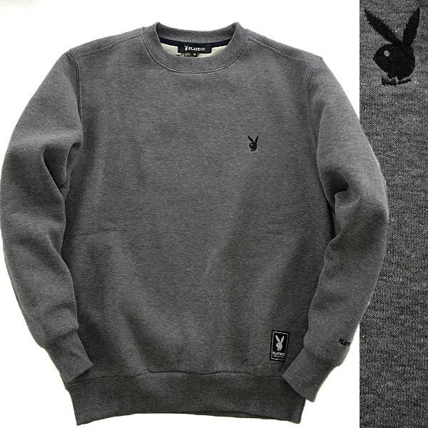 - 新品 プレイボーイ 秋冬 裏起毛 クルーネック スウェット LL 濃灰【PB1934057_98】 PLAYBOY メンズ 刺繍 トレーナー スエット プルオーバー