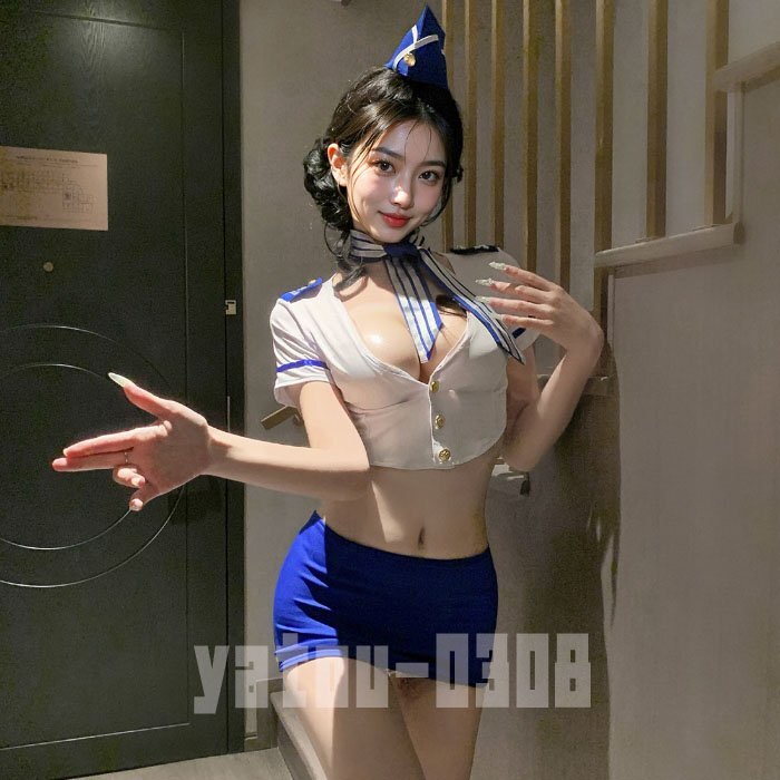 - E856 セクシーランジェリー 誘惑 キャビンアテンダント トップス ミニスカート Tバック コスプレ衣装 ナイトウエア