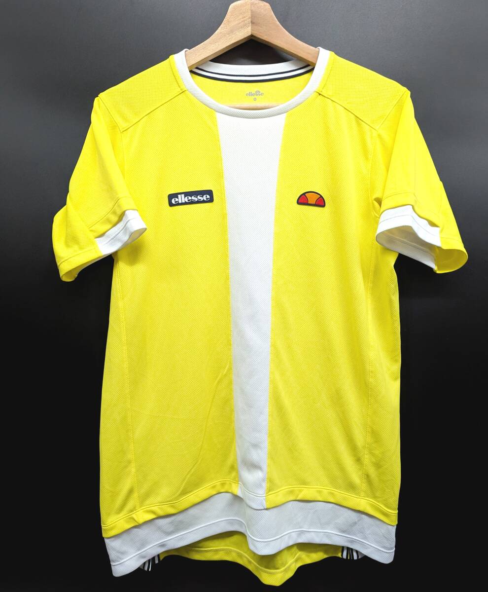 - 4990C 送料185円♪ ellesse エレッセ イエローxホワイト メンズ テニス バドミントン 速乾生地 半袖 Tシャツ M