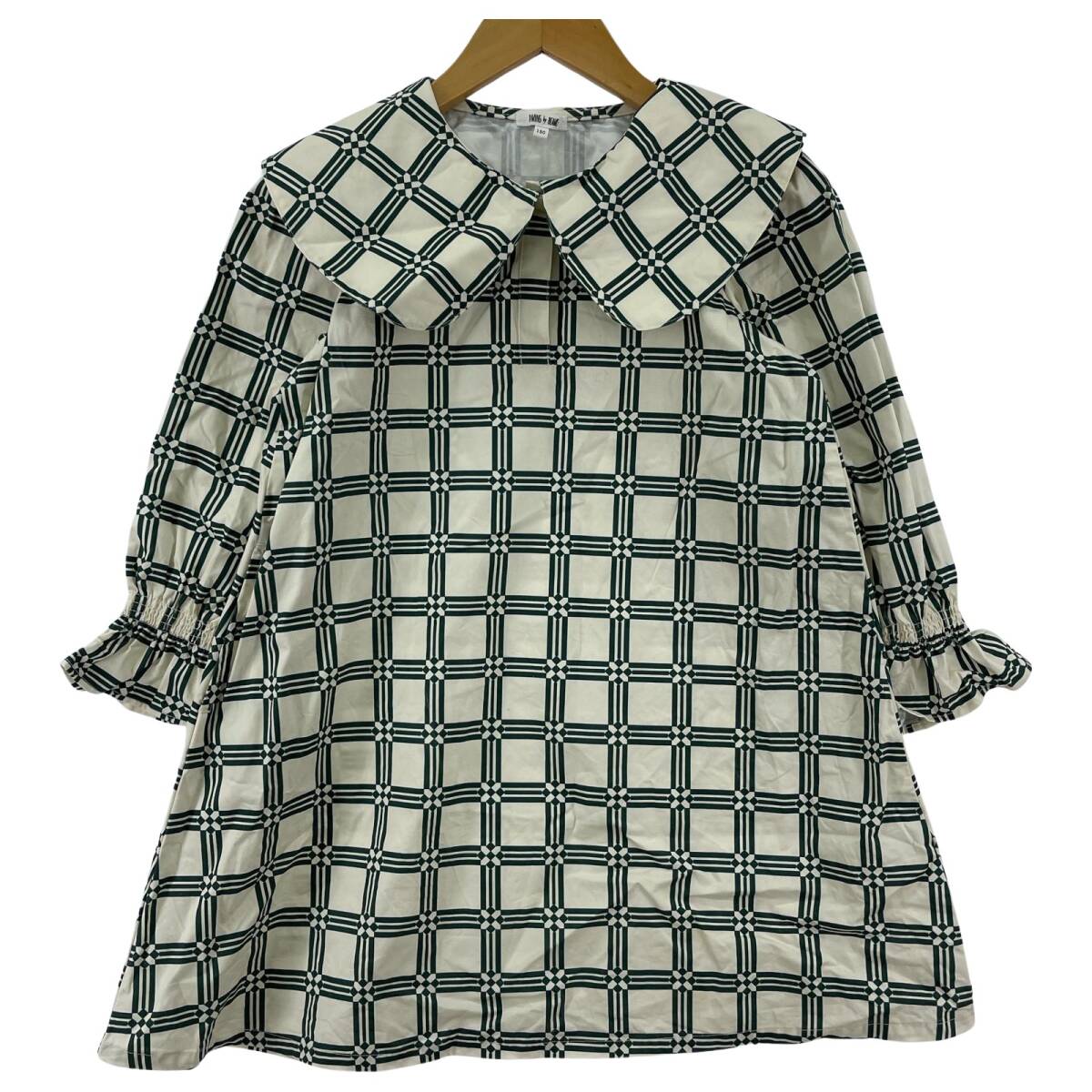 > B:MING LIFE STORE by BEAMS ビーミングバイビームス 総柄 ビッグカラー ワンピース size130/アイボリー×グリーン