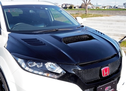 - 「明和/エルフォード」ヴェゼル(RU1~4)前期用軽量エアロボンネット(レインプロテクター付き)