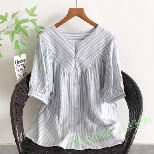 > ☆新品 チュニック ワイシャツ トップス Vネック 綿100% ゆったり オシャレ フリーサイズ ナチュラル
