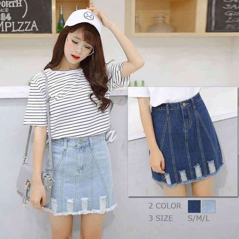 - デニムスカート ハイウエスト ミニスカート Aライン 台形スカート 春夏 L サックス