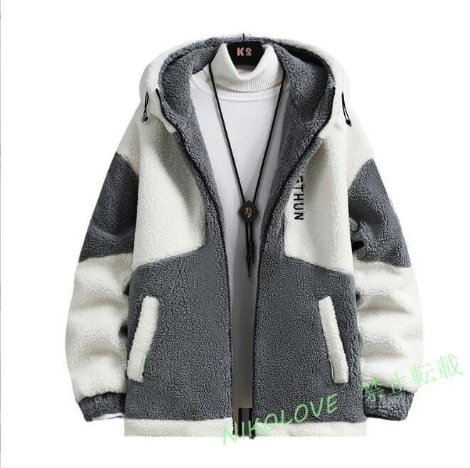 > ☆新品 秋冬3色選択可メンズフリースジャケットフリースジャンパーアウターボアジャケットブルゾンパーカー裏起毛フード付き防寒厚手