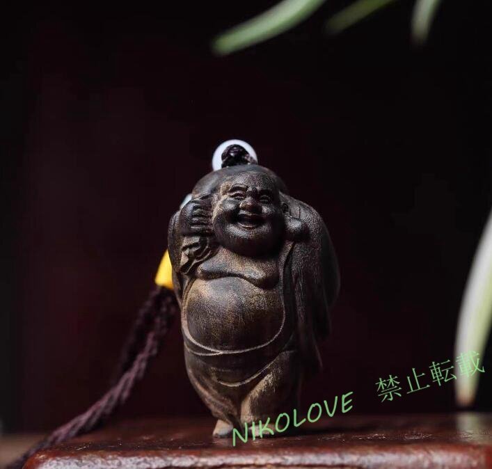 - ☆新品 布袋様 小型 木彫り 沈香(じんこう) 稀少香木 木製仏像 金運 置物