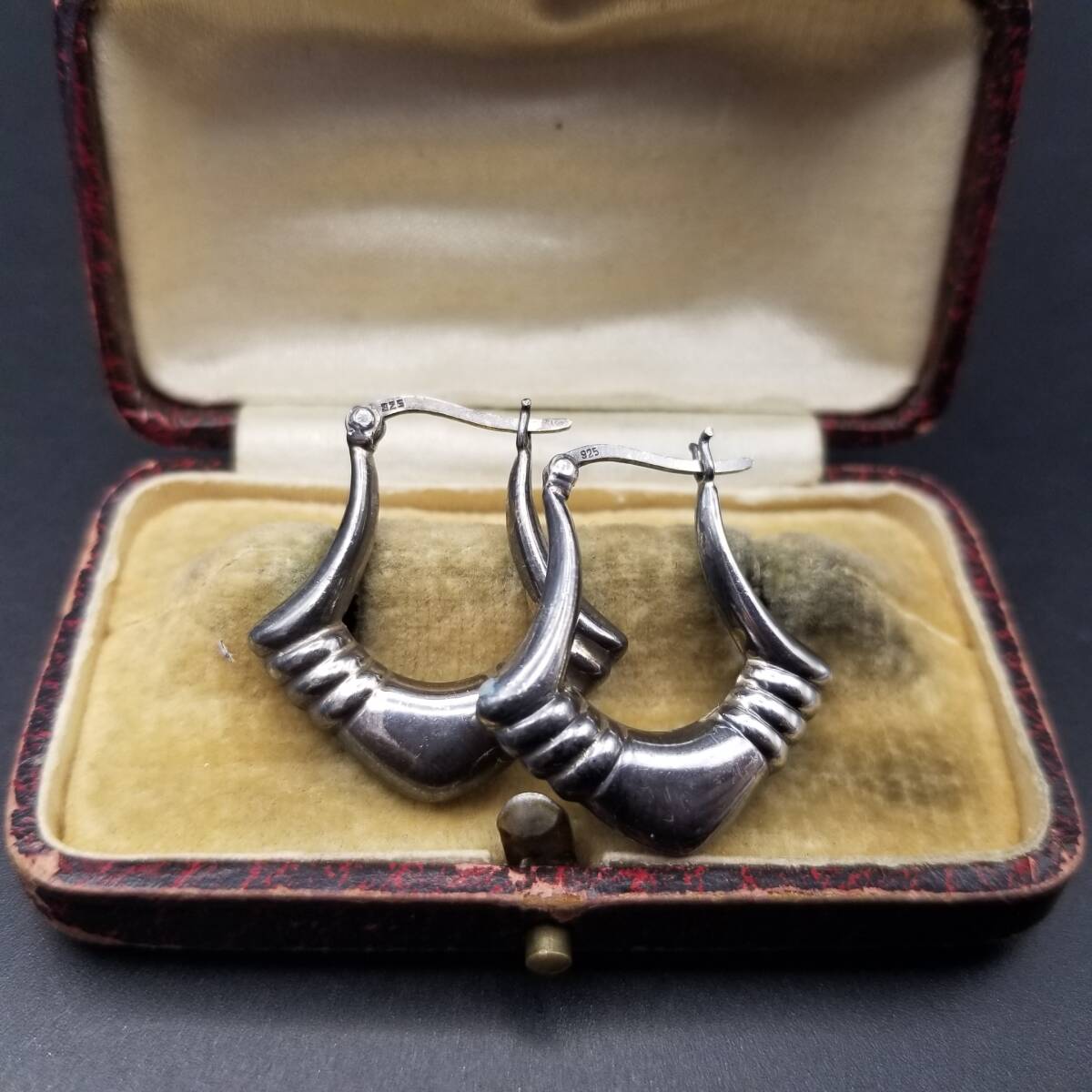 - クラシカル レトロ ひし形調 925 シルバー ヴィンテージ フープ ピアス 銀 上品 存在感 Y25-G