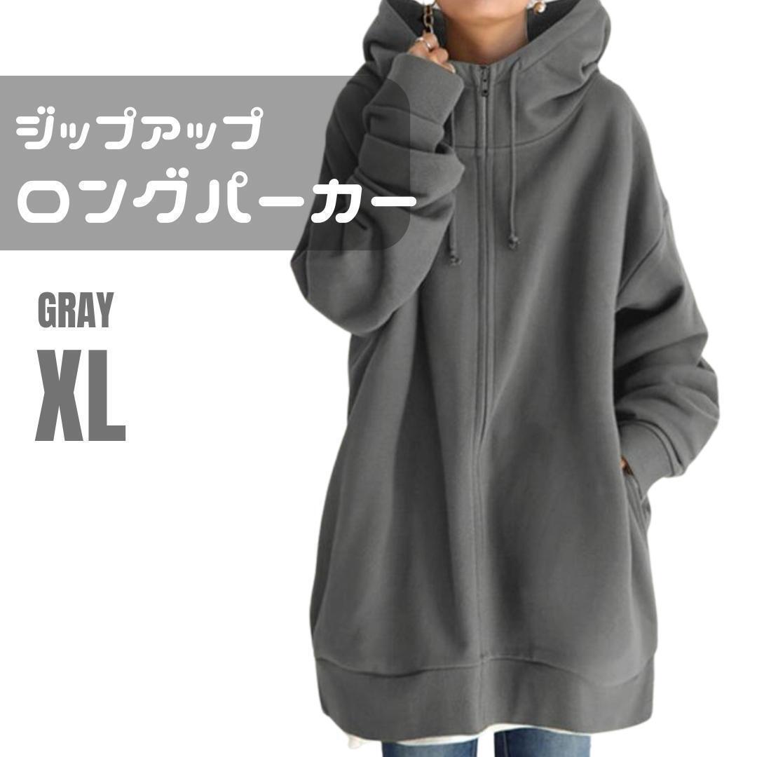 - 【大人気♪】XL グレー チュニック丈 ロングパーカー 体系カバー 灰色