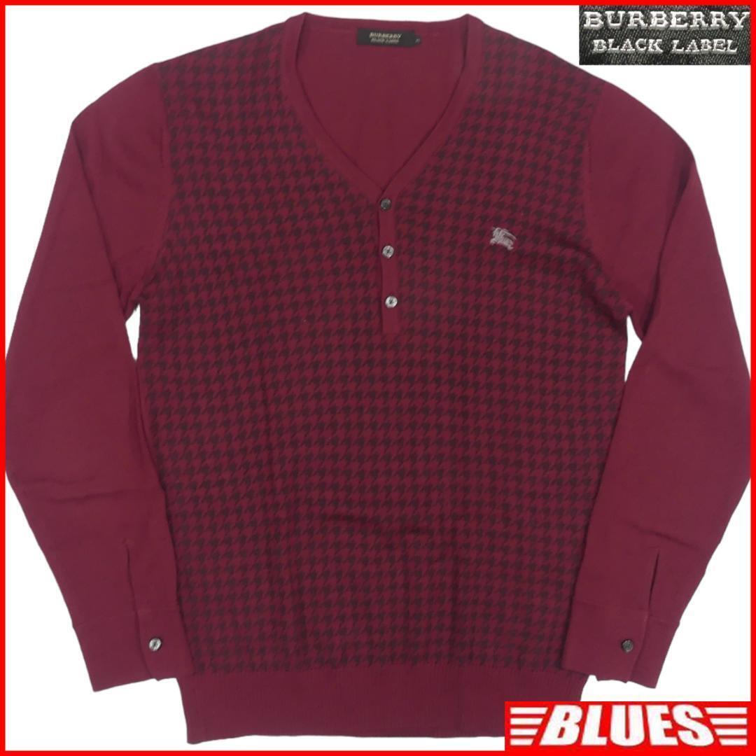 - 即決★BURBERRY BLACK LABEL★メンズL 廃版 ニット セーター バーバリーブラックレーベル 3 赤 千鳥格子 ウール 三陽商会 刺繍