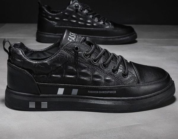 - 靴 【25.5cm】【 s33 】黒 メンズ ローカット PUレザー スニーカー クロコダイル風 クロコ 型押し シューズ スポーツ カジュアル シンプル