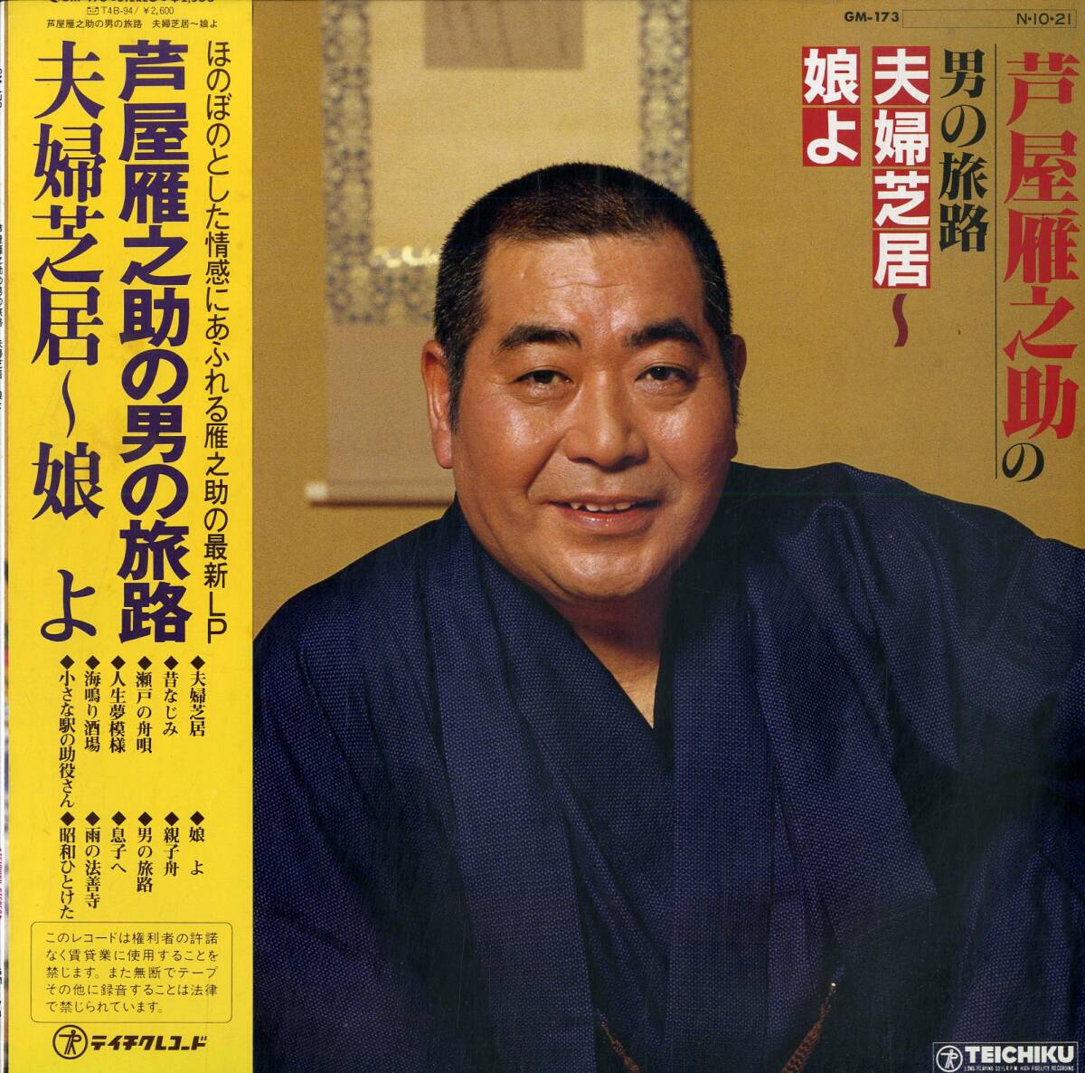 A00490855/LP/芦屋雁之助「男の旅路 夫婦芝居~娘よ (1984年・GM-173・テイチク)」