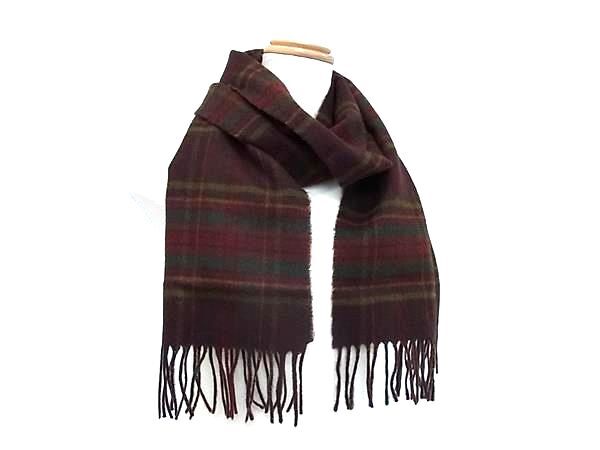 > 1円 ■新品同様■ Johnstons of Elgin ジョンストンズ オブ エルガン ラムウール100% マフラー ストール ショール ボルドー系 FI8647