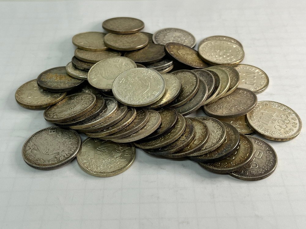 > 【6古086】1円スタート 1000円銀貨 約50枚 額面約50000円 まとめ 昭和 記念硬貨 東京オリンピック 富士と桜 千円 現状品