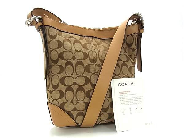 > 1円 ■美品■ COACH コーチ シグネチャー キャンバス×レザー クロスボディ ショルダーバッグ 肩掛け レディース ベージュ系 BQ2077