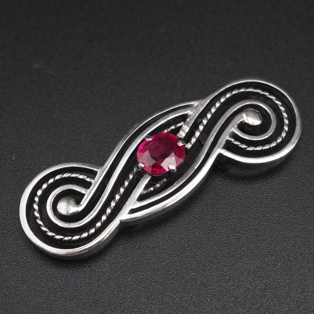 - H558 ピンクストーン 帯留め デザイン シルバー 和装小物 ヴィンテージ