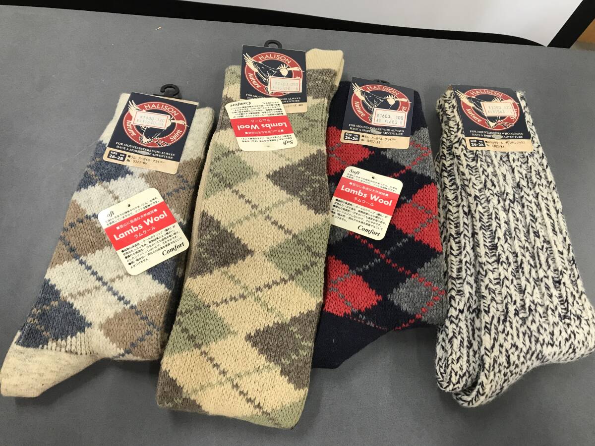 - HALISON ラムウール スコッチウール 靴下 4個セット シミあり 現状品