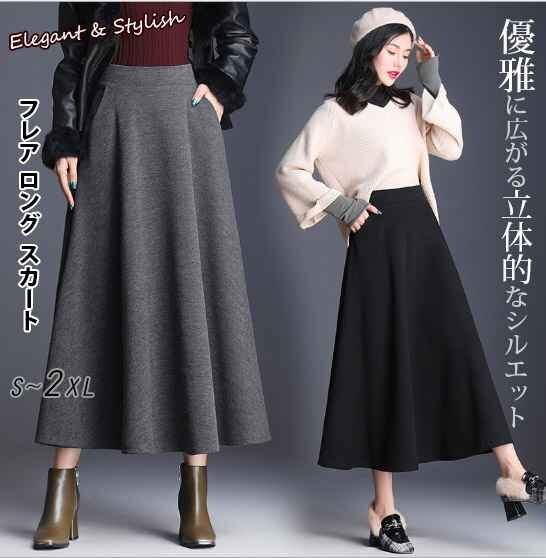 - 秋冬新作 トレンド 無地 フレア スカート Aライン ロング丈 カジュアル 着回し 通勤通学 2XL グレー