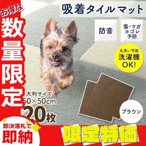 > 【限定セール】新品 洗える 吸着タイルマット 大判50×50cm ペット 赤ちゃん 滑り止め 転倒防止 マット カーペット カット自由 ブラウン