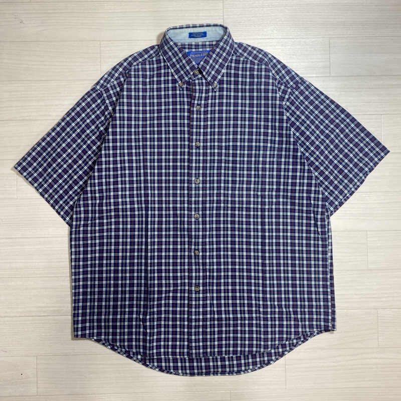 > PENDLETON/ペンドルトン/90s/タータンチェック B.D.シャツ/胸ポケット/半袖/コットン/背面タック/アメカジ/古着/Lサイズ
