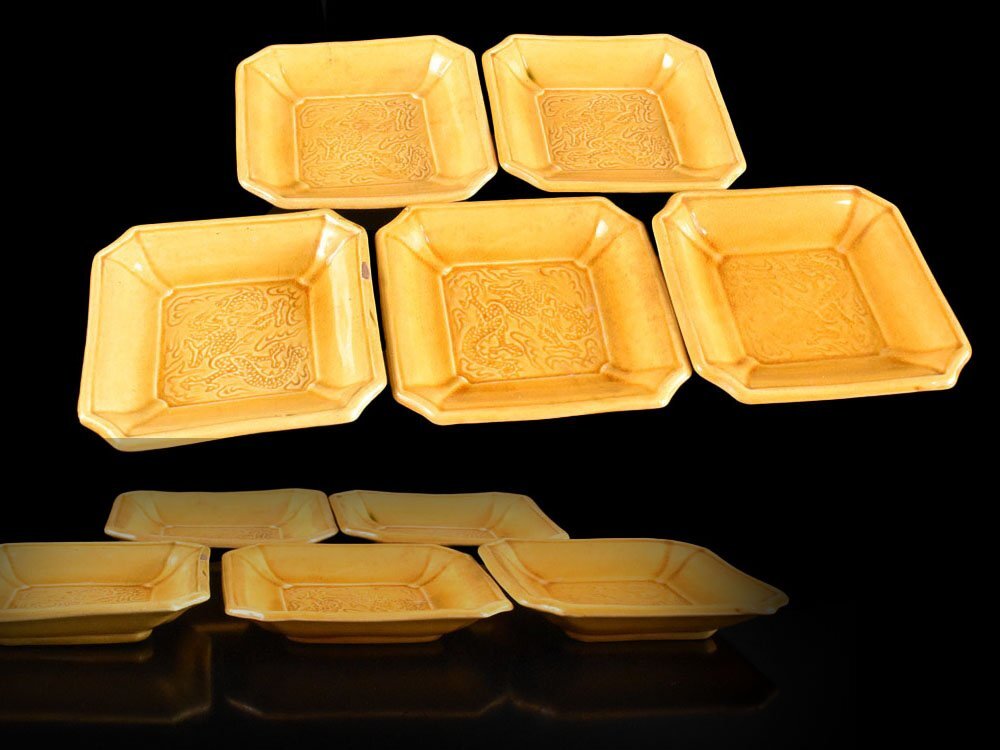 - 【雲】某収集家買取品 珉平焼 黄交趾 雲龍紋皿 5客 古美術品(四方 淡路 懐石料理道具)AY6221 LTfde OTJlok