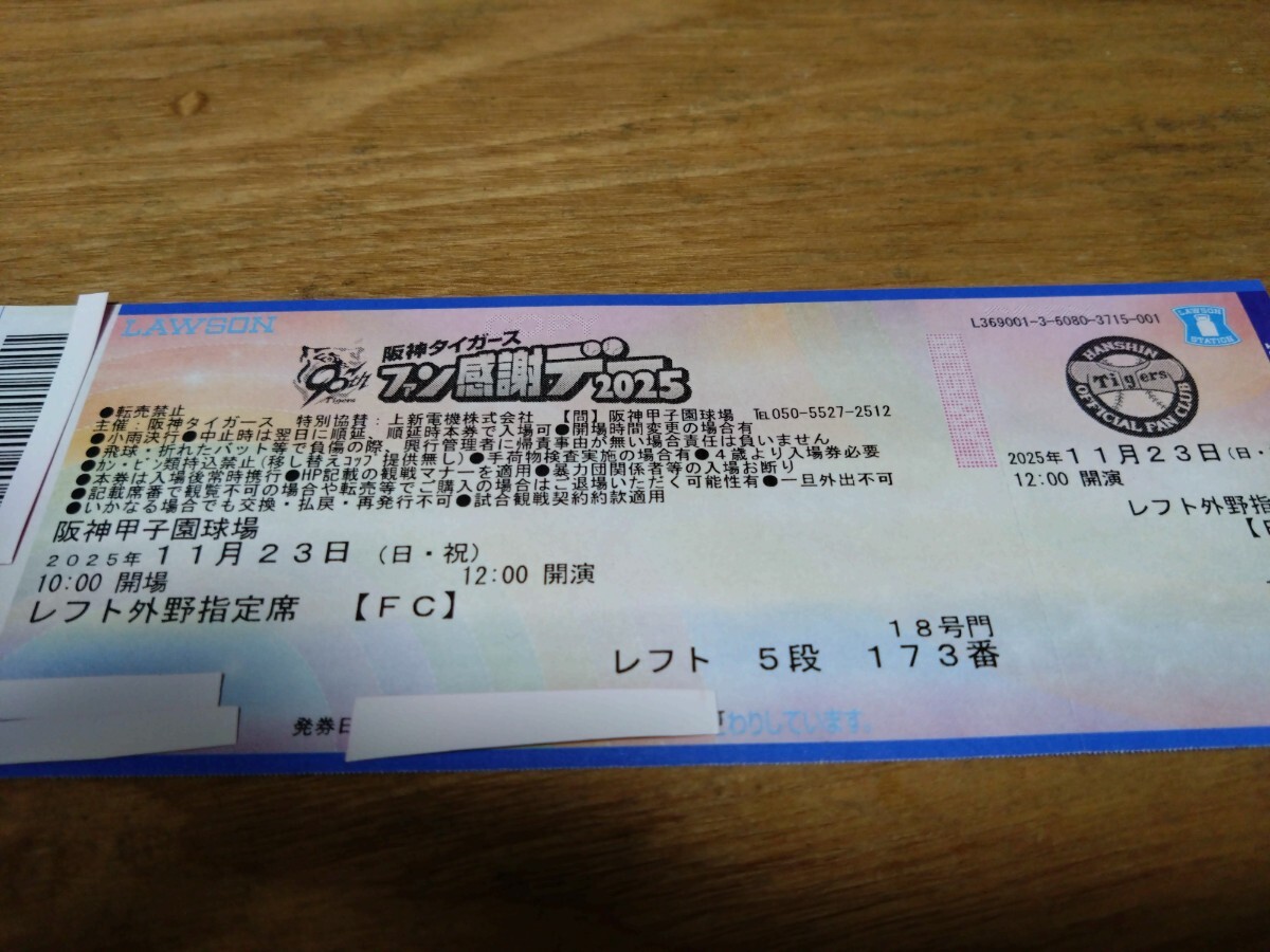 - 阪神タイガースファン感謝デー レフト外野席5段 通路側 1枚