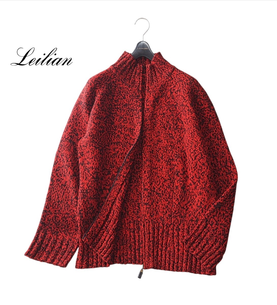 - 新品同様★レリアン Leilian ★大きいサイズL相当★今季トレンドオータムレッド★ざっくり肉厚・カシミヤ100% カーディガン