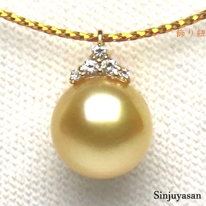 > 真珠屋さん ナチュラル【天然ゴールド】最高の色!10.3mm 白蝶真珠 ダイヤモンド D0.07ct K18ペンダントトップ 特選パール 18金 新品