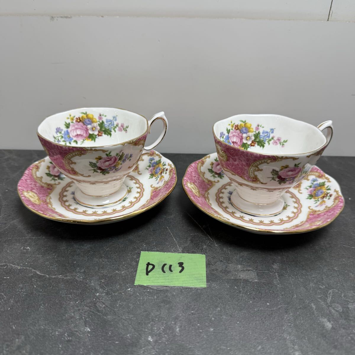> ★D113 ROYAL ALBERT ロイヤルアルバート 花柄 ピンク ティーカップセット レディカーライル ボーンチャイナ カップ&ソーサー ★