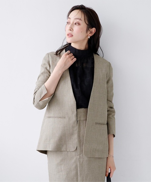 - 「ur's」 ノーカラージャケット S モカ レディース
