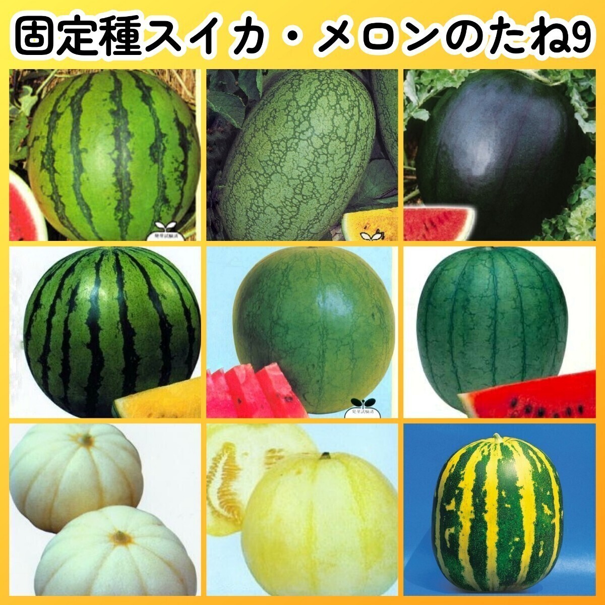 - 匿名配送無料◆固定種スイカメロン種9◆新大和二号嘉宝西瓜シュガーベイビー旭大和クリーム2号西瓜乙女西瓜菊メロンみずほタイガーメロン