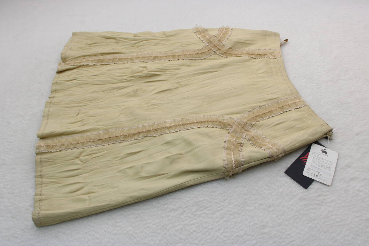 - 6056 新品タグ付き 日本製高級羊革レザーフリルデザインスカート イエロー9号