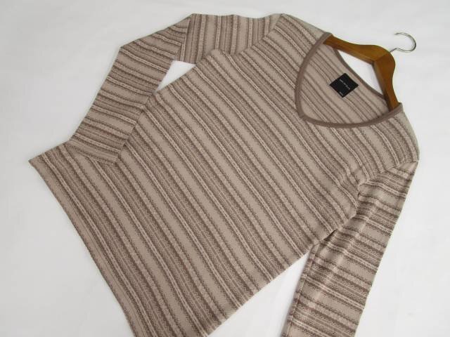 - メンズ 美品 シップスジェットブルー SHIPS JET BLUE 長袖 Vネック 洗えるニットカットソー S ベージュ×ブラウン 総柄