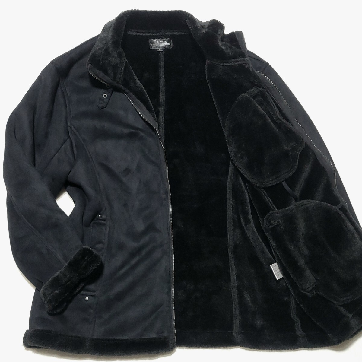 > 希少3Lサイズ/美品 ■ギルエヴァンス GILEVANS ジャケット ライダース ブルゾン コート ファー エコムートン 極暖 秋冬 メンズ ブラック 黒
