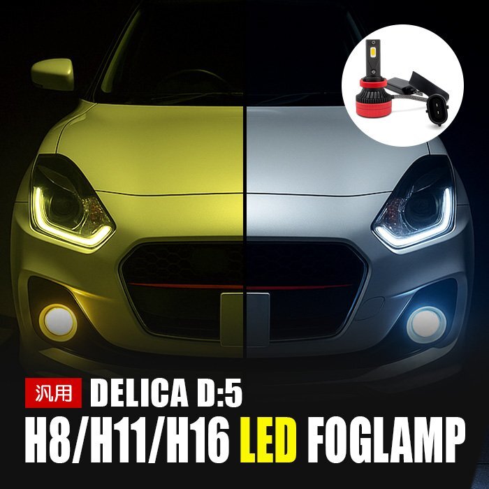 - デリカD:5 LED フォグランプ H8 H11 H16 3000K 8000K カメレオン 色温度調整 アプリ 連動 高輝度 イエロー ホワイト LEDフォグランプ 左右