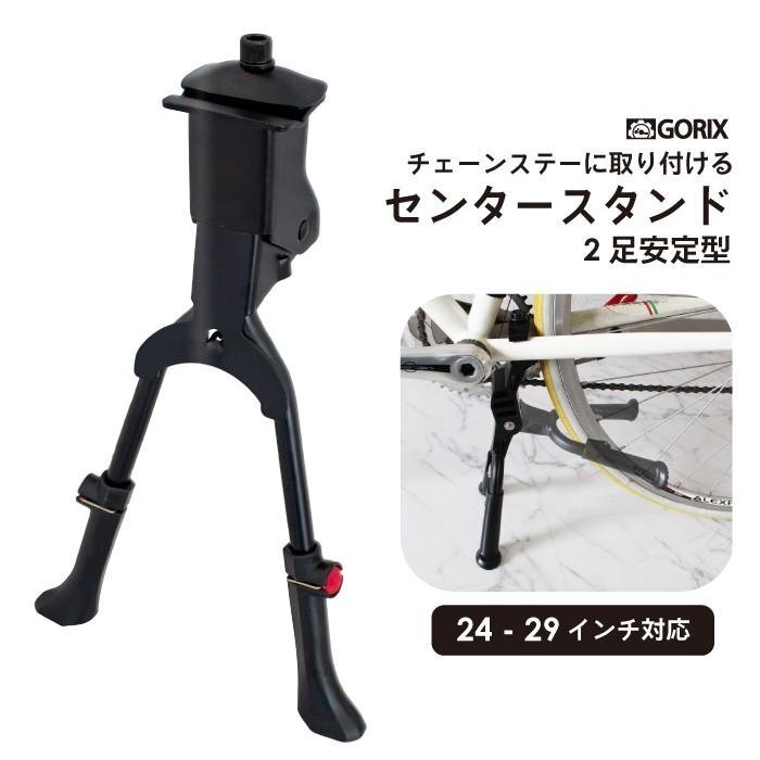 | 便利な自転車のキックスタンドのセンタータイプでチェーンステーに挟むだけで簡単に取り付けられます。 2足でバランスの取れた安定型のスタンドです。