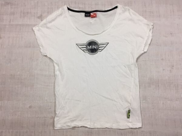 > プーマ PUMA ミニ MINI BMW 自動車 モータースポーツ エンブレム ピチT チビT 半袖Tシャツ カットソー レディース XS 白