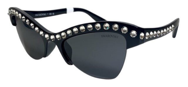 - 未使用 スワロフスキー サングラス 大粒ストーン SK6043 ブラック 黒 クリスタル SWAROVSKI レディース 【中古】