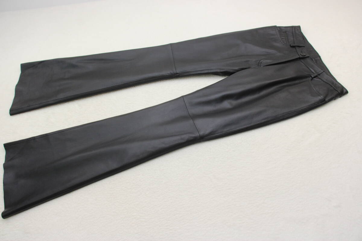 - 6128 新品タグ付き 高級羊革レザーフレアパンツ ブラック9号