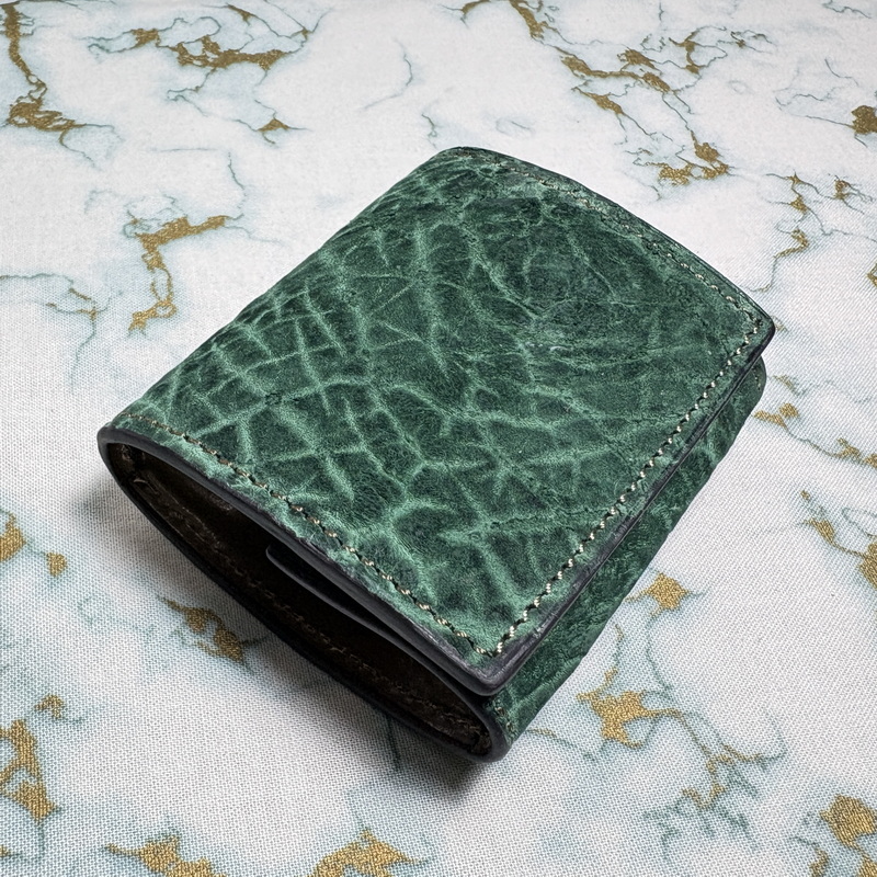 > firebird【BOXコインケース】ヒポポタマスレザー×国産タンニンレザー 高級希少種 革財布 スプルースグリーン×オリーブ プレゼントにも!