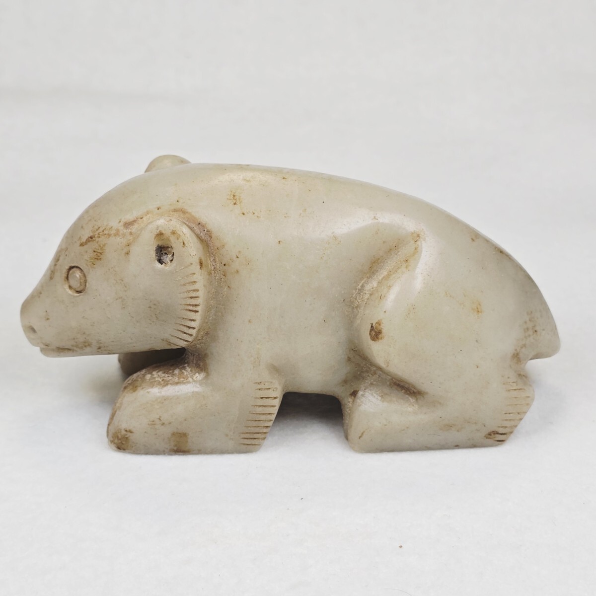 - 古美術 漢白玉 手彫 玉熊 置物 迫力 重厚