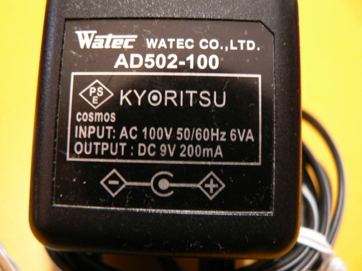 - 送料最安 450円 PAD115:共立ACアダプタ WATEC AD502-100 出力 9V-200mA 給電口径3.5mm 中心+極 by KYORITSU