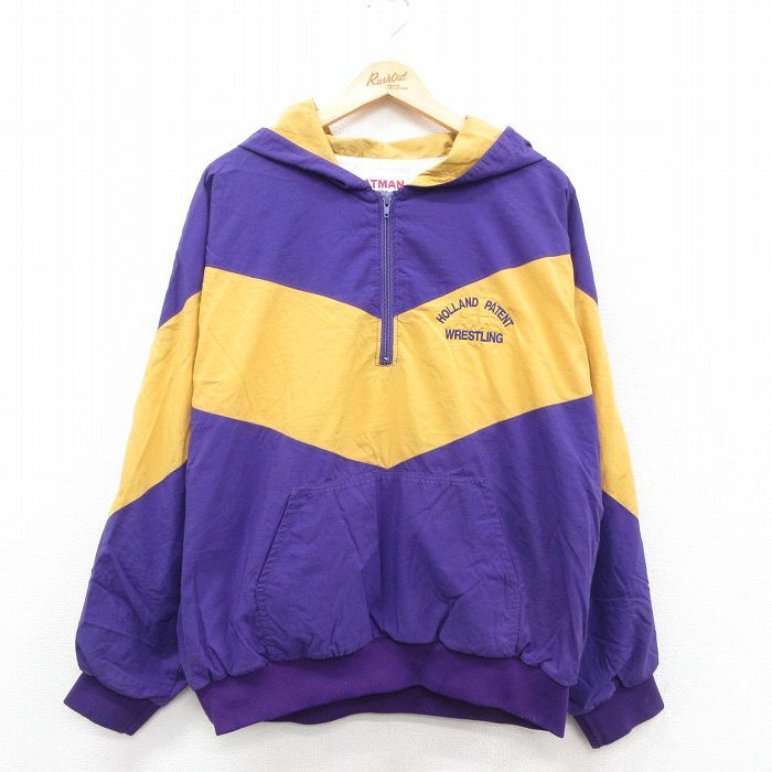 > XL/古着 長袖 ハーフジップ ナイロン ジャケット パーカー メンズ 90s レスリング ツートンカラー 大きいサイズ 紫他 パープル 25oct30 中