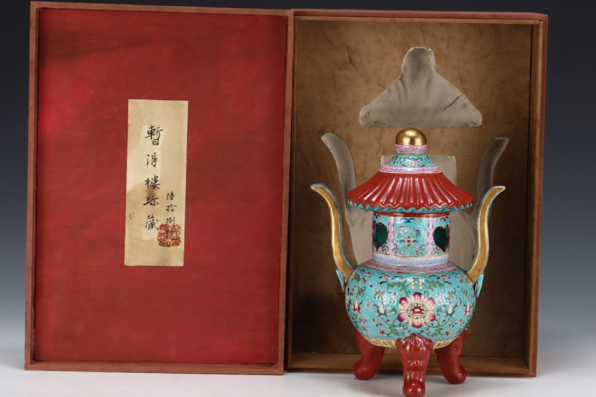 > 永し 清時代 雍正年製 琺瑯彩 松石釉花卉紋三足爐 古陶磁器 陶芸 皿 中国陶瓷器 唐瓷 置物擺件 古美術 古賞物 収集 旧家蔵出 中国唐物 A868