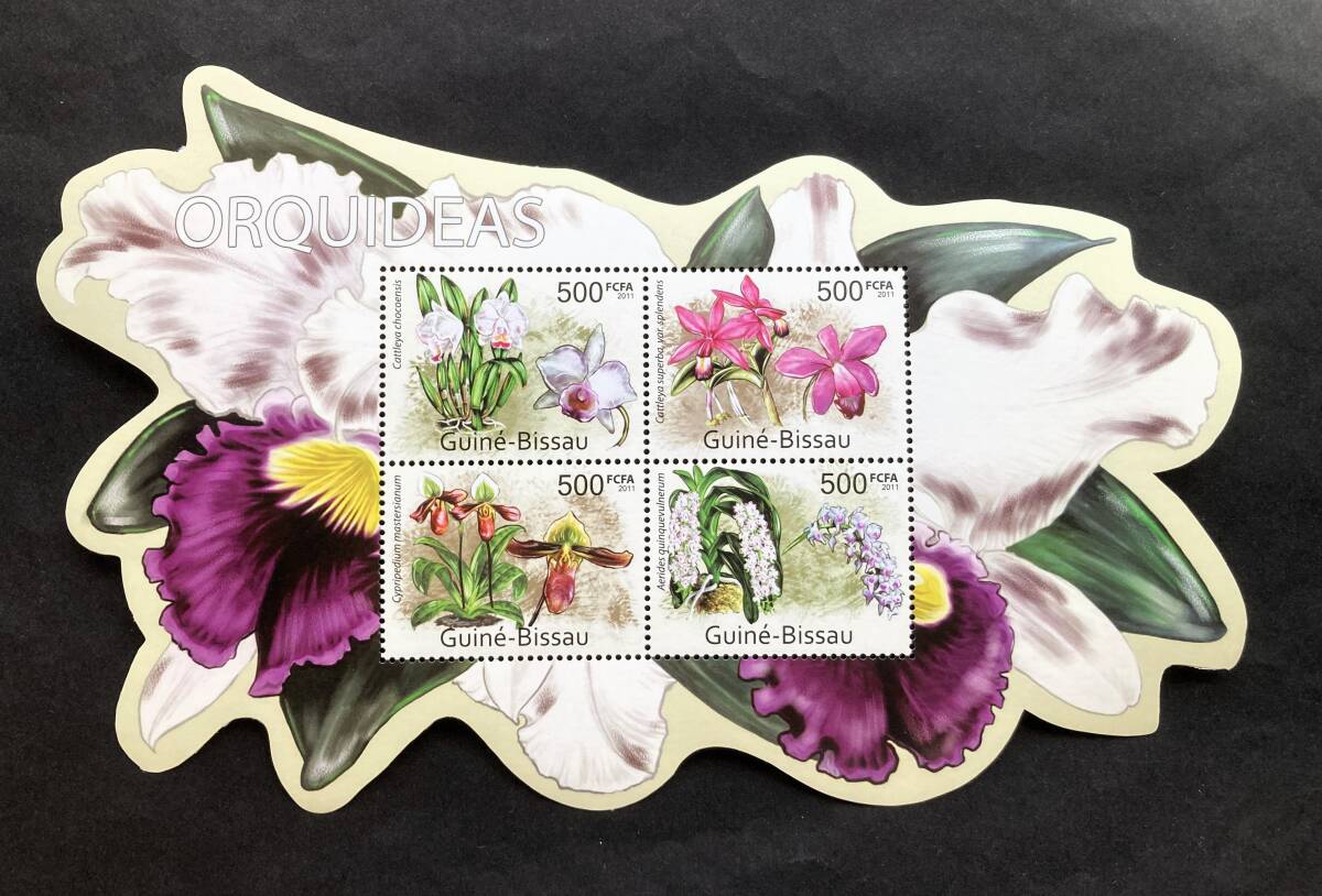 - 外国切手: ギニアビサウ切手 「蘭(ラン)」(カトレア・チョコエンシス ほか) 変形 4種m/s 未使用