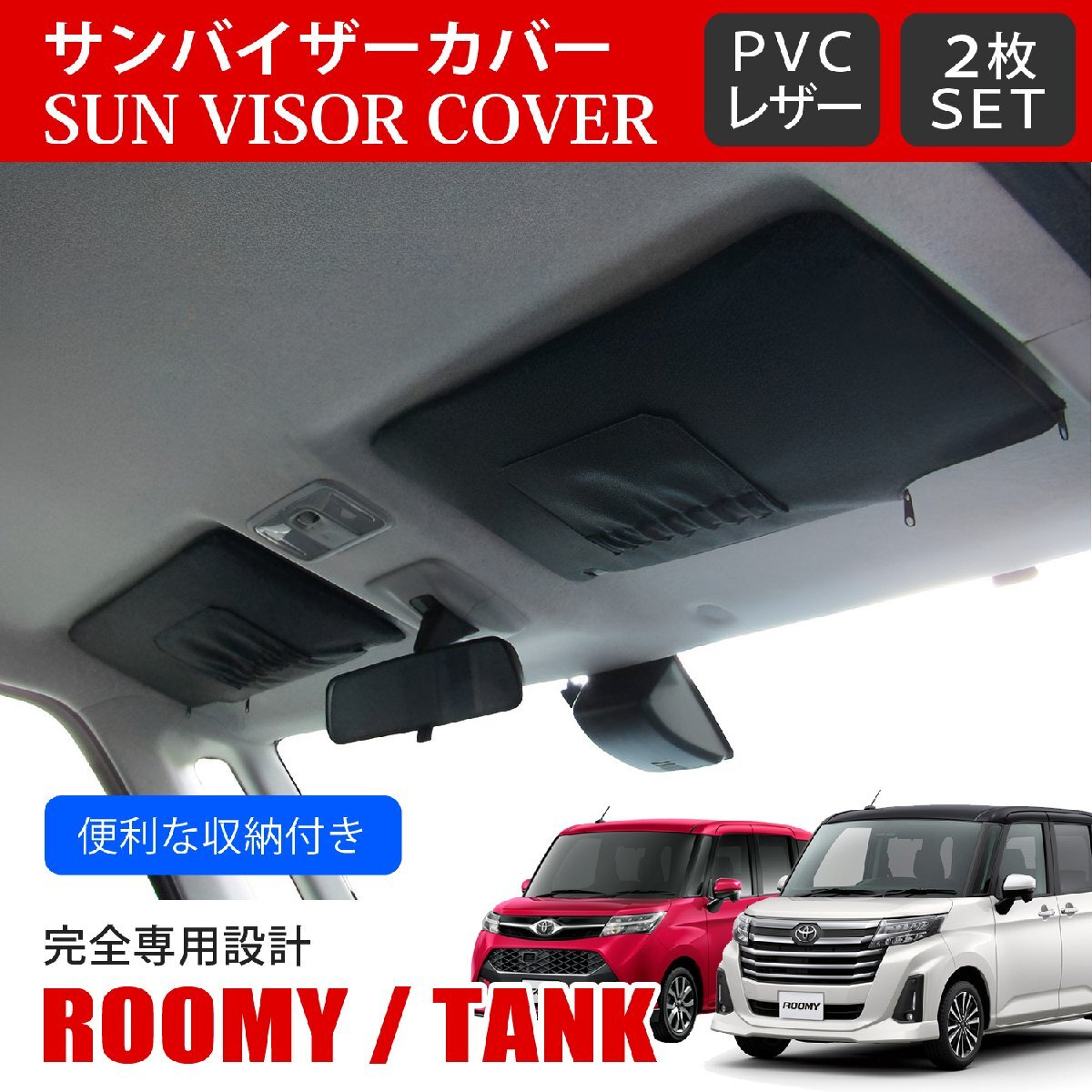 - サンバイザーカバー 収納ポケット付き PVCレザー 日除け 左右セット ルーミー タンク