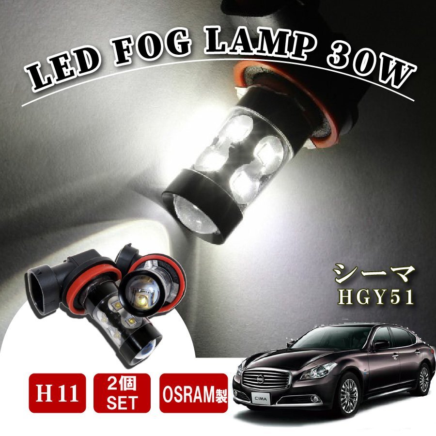 > シーマ HGY51 H11 LED フォグランプ 60W LEDバルブ ホワイト 2個 バルブ 後付け LEDフォグランプバルブ