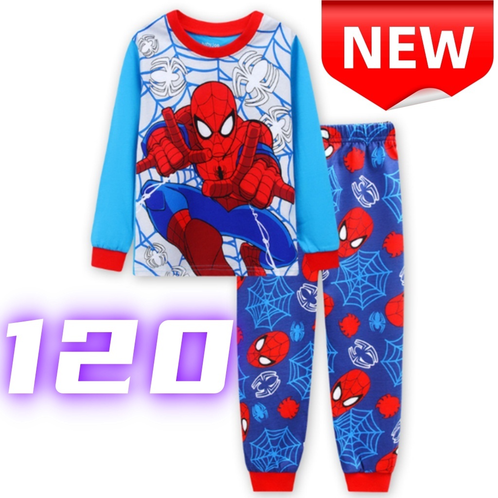 - [新品]スパイダーマン パジャマ 子供服 キッズ 長袖 上下セット 男の子 120cm コットン 部屋着 ルームウェア 長袖パジャマ 綿 春秋冬