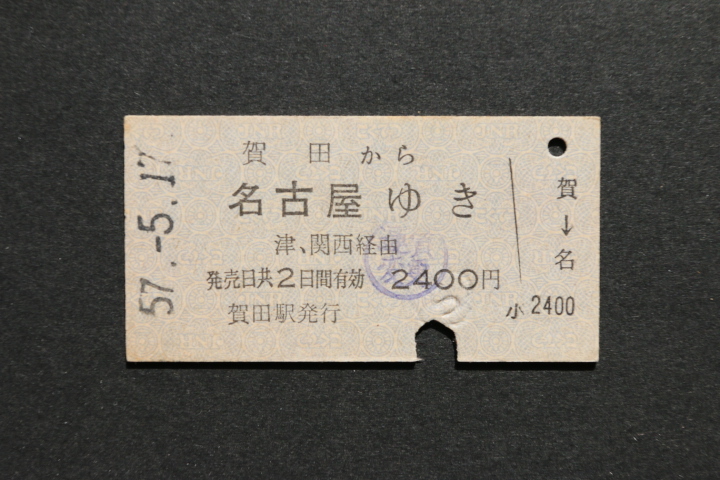 - 乗車券 賀田から 名古屋ゆき 2400円