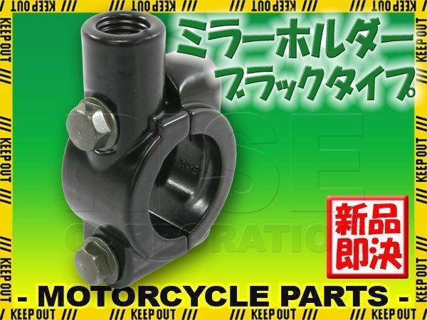 汎用 ブラック ミラーホルダー 正ネジ 10mm ミリバー 22.2mm ハンドル用 1個 黒