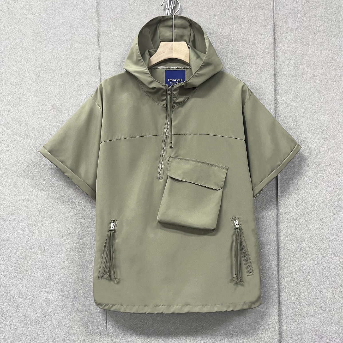 > 新作・半袖パーカー 定価2万◆Emmauela・イタリア・ミラノ発◆上質 ゆったり フード付き 体型カバー 速乾 プルオーバー サマー 爽やか L/48